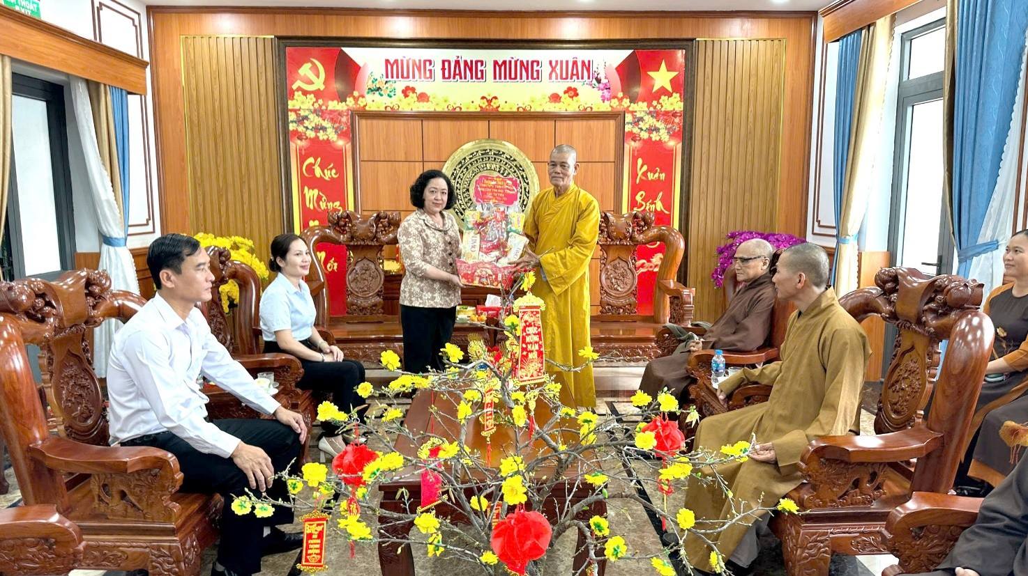 Chứng minh Ban trị sự Giáo hội Phật giáo Việt Nam tỉnh Tây Ninh chúc Tết Đảng ủy - HĐND - UBND - Ủy ban MTTQ Việt Nam xã Tân Thạnh