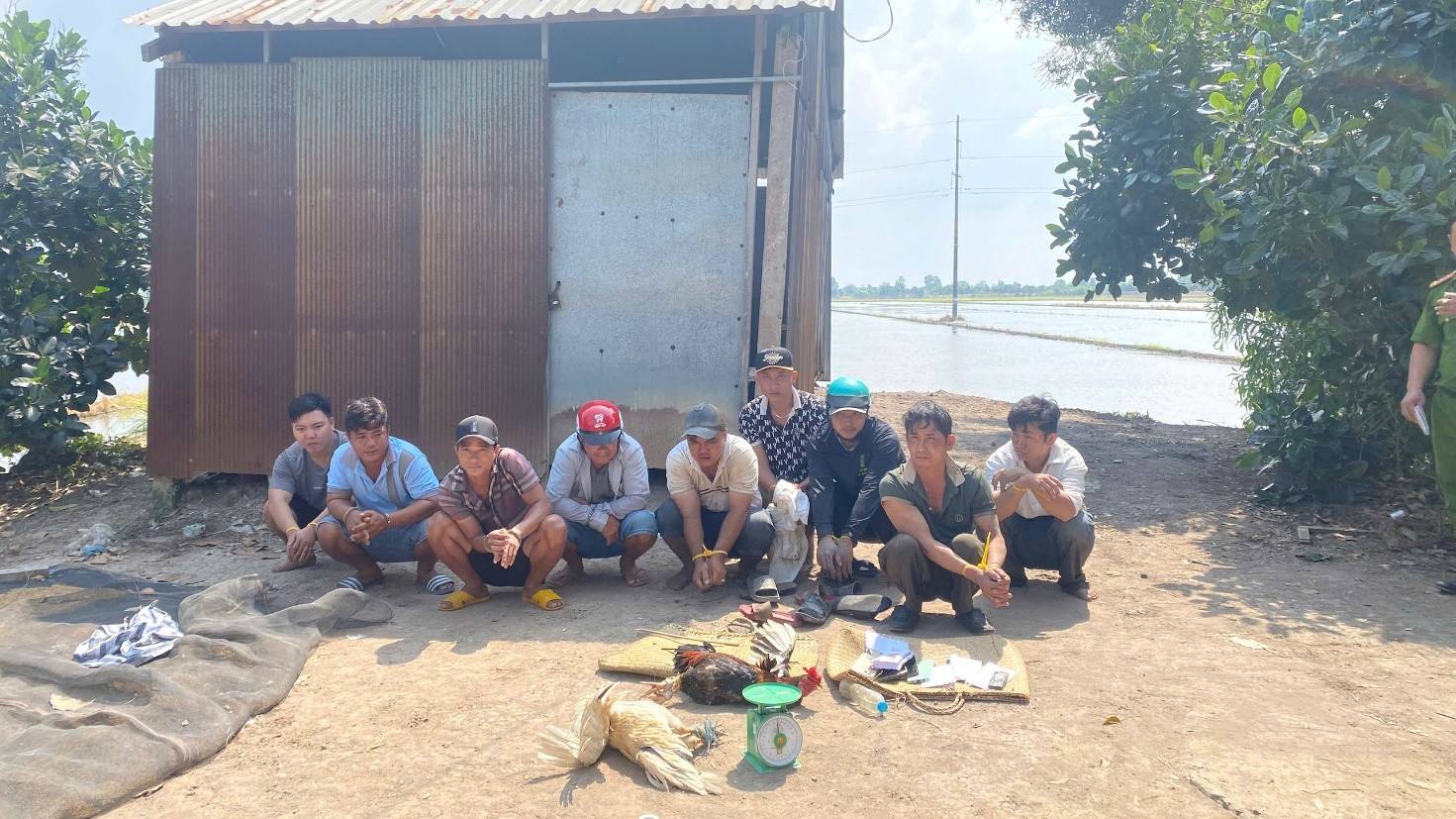 Công an xã Tân Thạnh triệt phá tụ điểm đá gà ăn tiền, tạm giữ 10 đối tượng